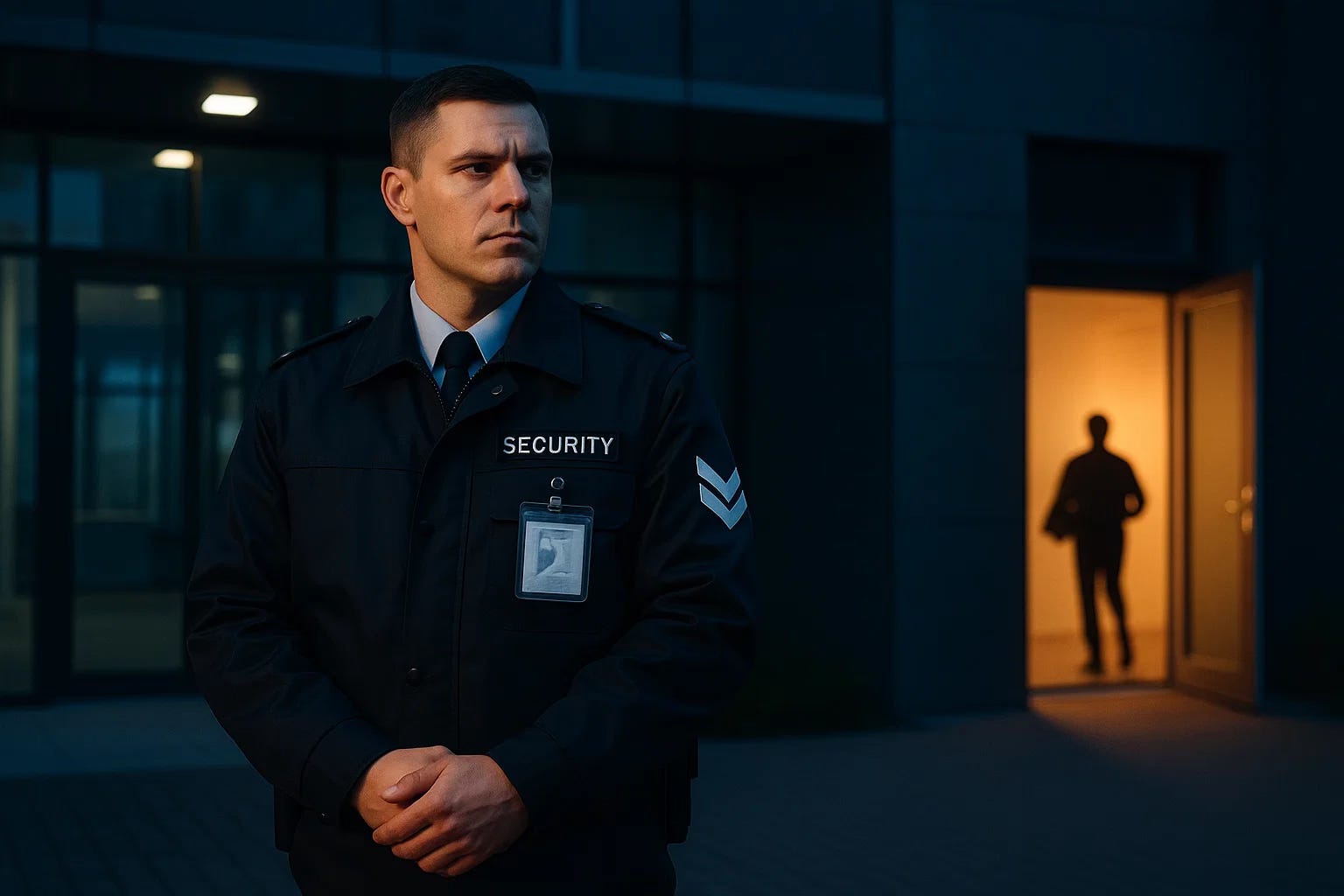 Bewaker bij de voordeur, achterdeur open